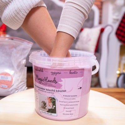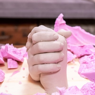Po 5–7 minutách tuhnutí lze ruce vyjmout. Správné ztuhnutí poznáte podle toho, že materiál má gumovou konzistenci, není vlhký a je zcela zpevněný.